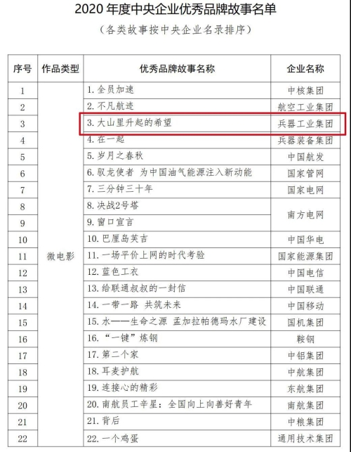 兵器工業(yè)集團(tuán)品牌建設(shè)案例入選2020年度100個(gè)國(guó)有企業(yè)品牌建設(shè)典型案例和100個(gè)優(yōu)秀品牌故事 |