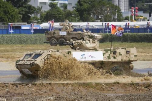 裝甲突擊領域,參展產(chǎn)品擁有強大的武器系統(tǒng)、良好的越野機動性、先進的信息系統(tǒng),具有跑的快、打的準、防的住、信息化智能化程度高等特點。